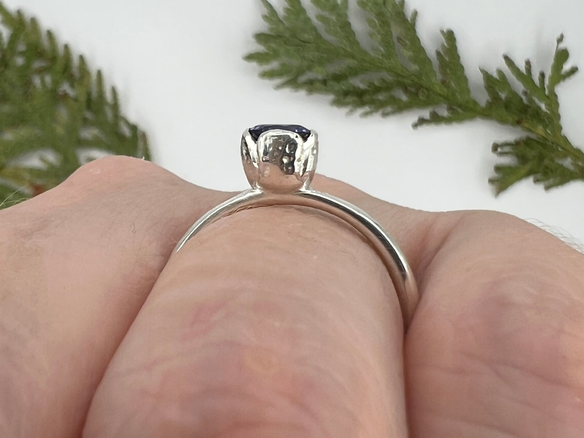 band 2.5mm, setting 6mm high from inner edge, amethyst 4.5mm diameter