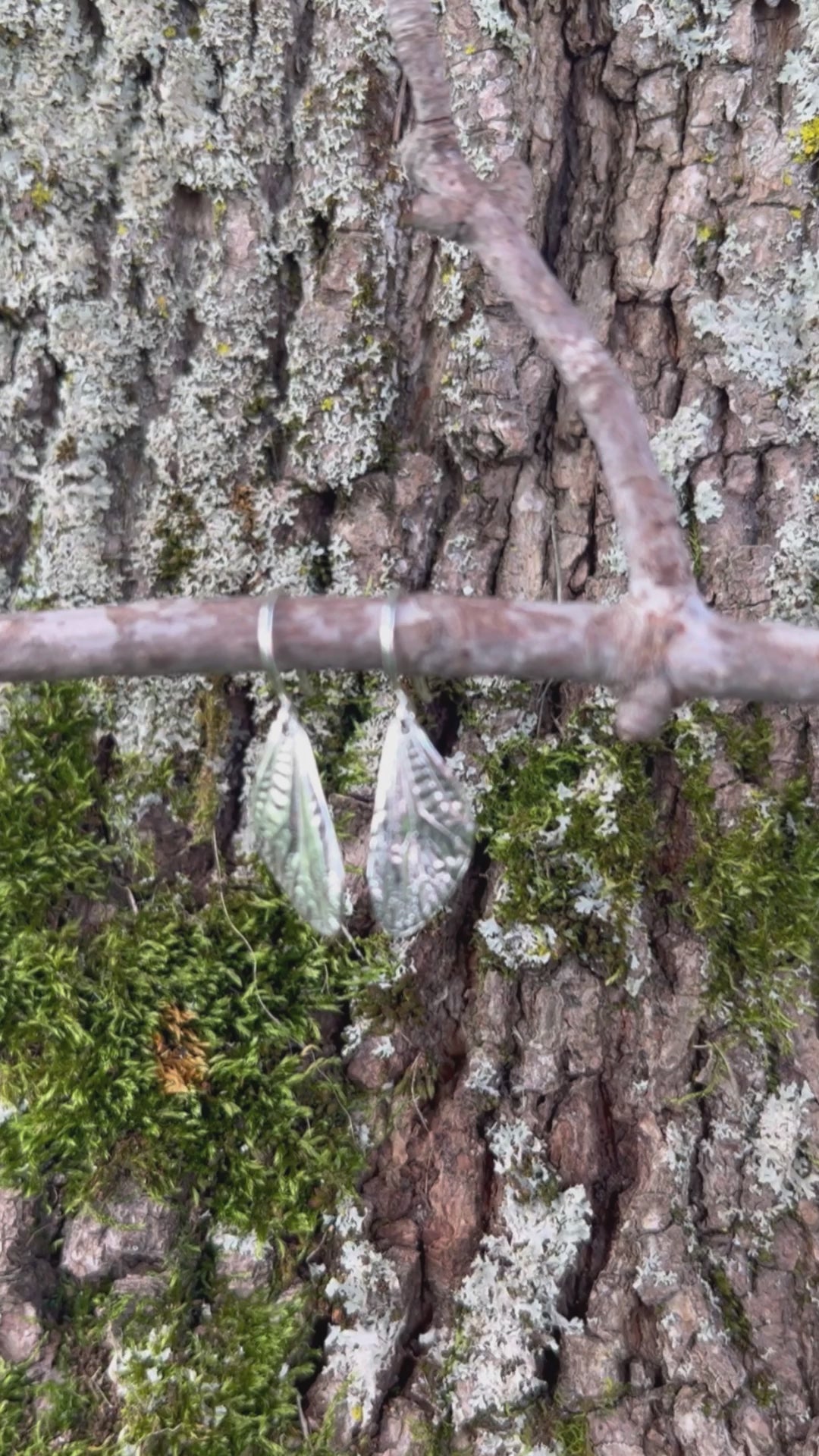 Take flight with these shimmering wings earrings! Cast in solid sterling silver, these earrings are created from both the inner and outer wings of a real cicada, showcasing the intricate folds and delicate veins. Their polished surface sparkles and shimmers as they catch the light with every movement.