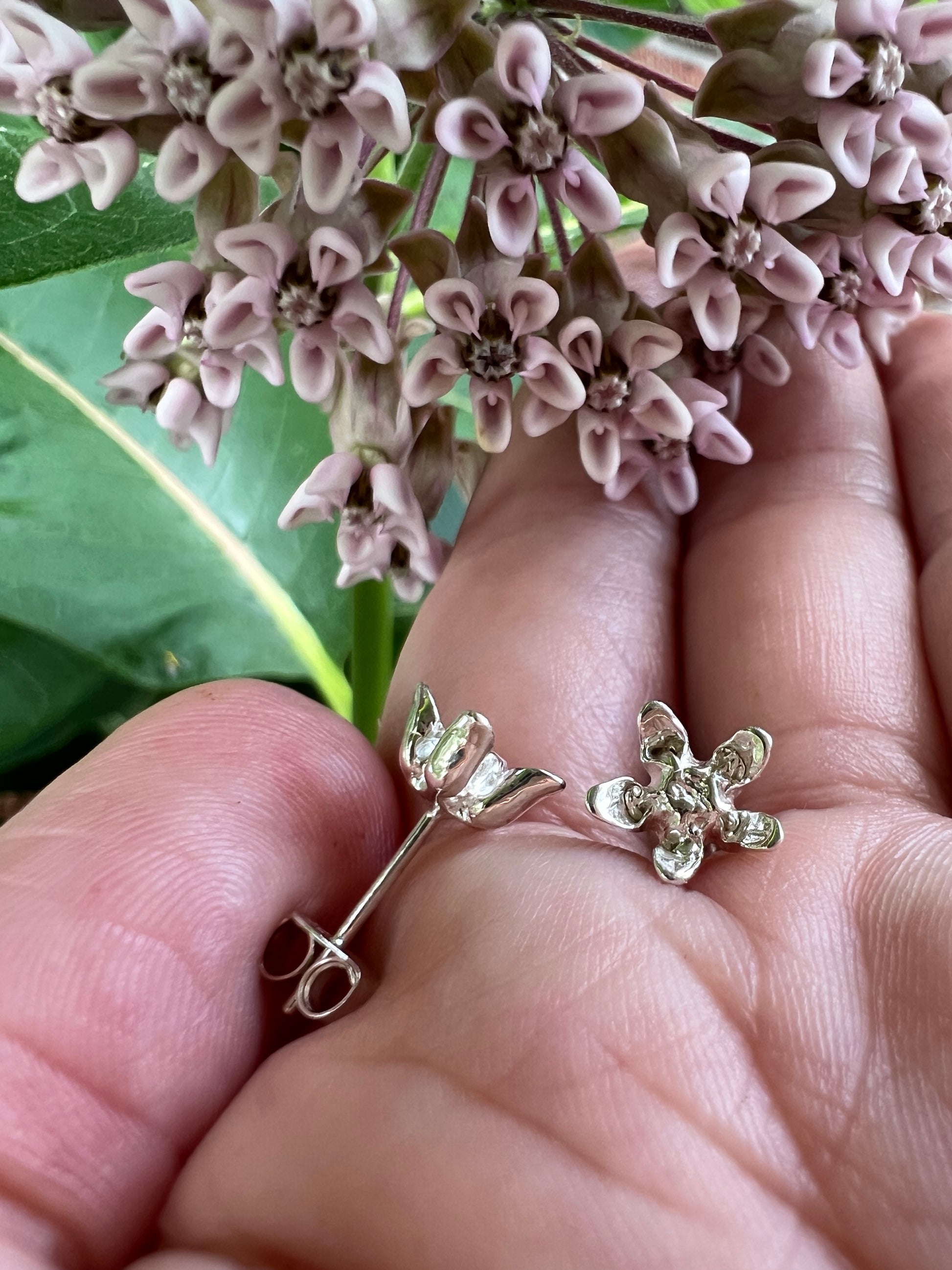 These beautiful flower earrings were created by making a mould of real milkweed flowers from my garden before casting them in sterling silver to create gorgeous floral studs that will stay fresh forever.
