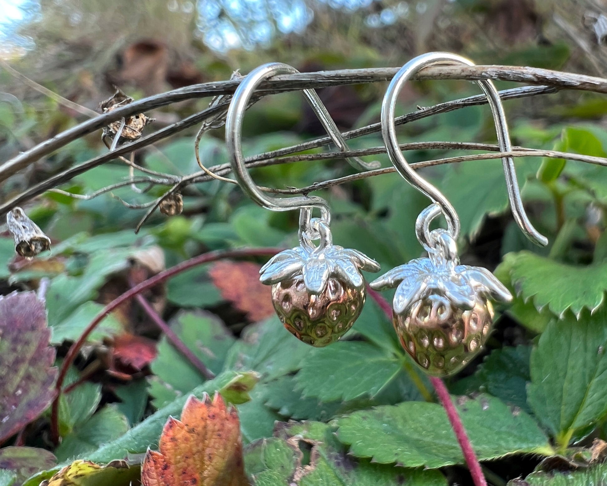 Hand-carved wax models are cast into precious metal to bring the delicate details and playful spirit of wild strawberries to life. Available in sterling silver or two-tone with a juicy 10K rose gold berry and sterling silver leaves.